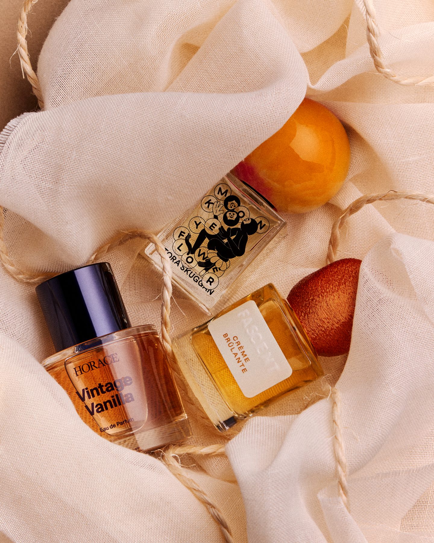 From top to bottom and left to right: Fascent – Crème Brûlante, 55€ / Horace – Vintage Vanilla, from 62€ / Bon Parfumeur – 502 Iris Cartagena, from 65€ / Stora Skuggan – Monkeyflower, 150€.
